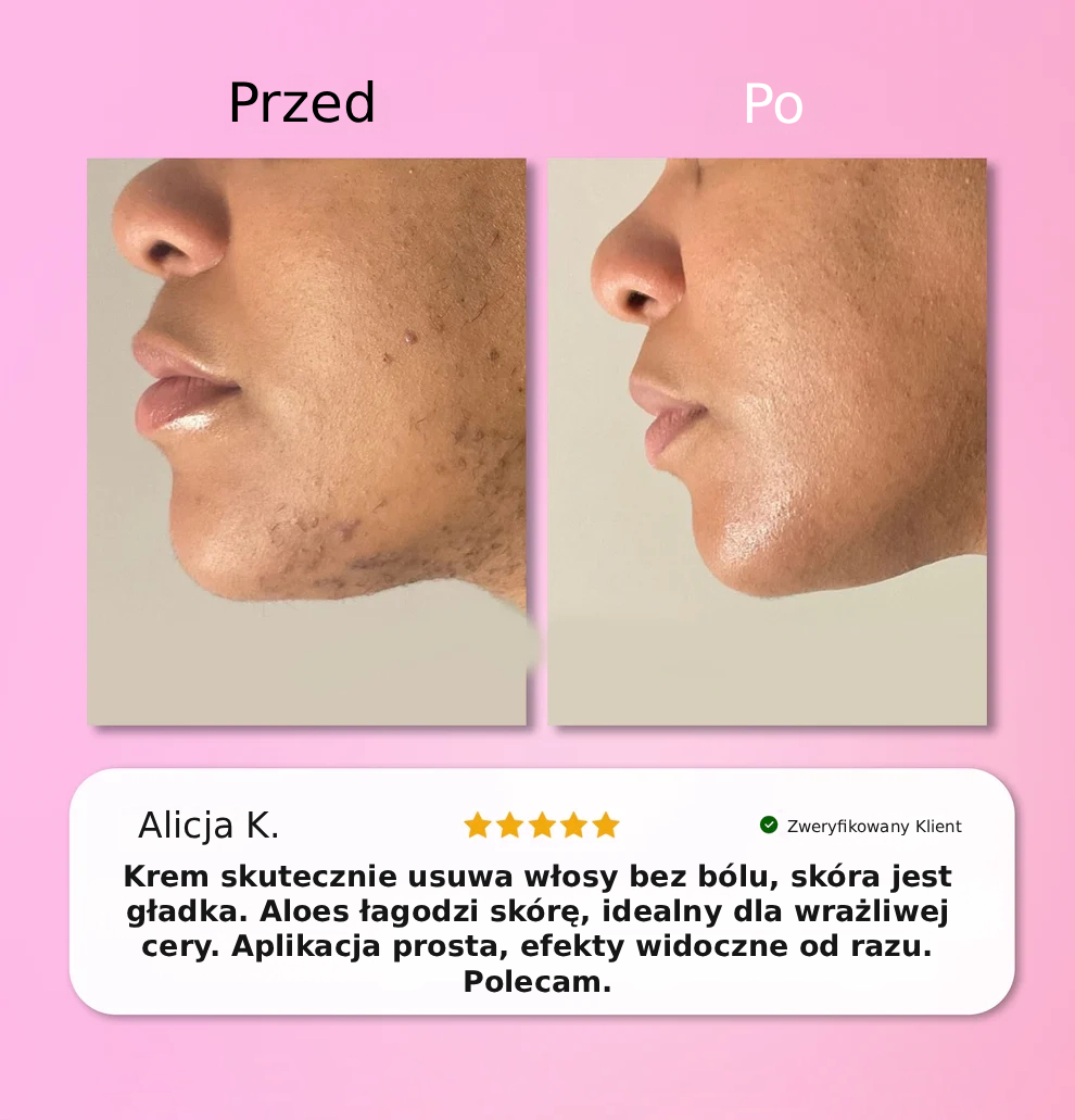 Nie, to powszechny mit. Używanie kremu do usuwania włosów twarzy AURLUX nie powoduje zwiększonego wzrostu włosów. Wręcz przeciwnie, z czasem włosy odrastają cieńsze i miększe. Krem działa tylko na powierzchni skóry, nie wpływając na liczbę mieszków włosowych ani tempo wzrostu. To delikatna i skuteczna opcja na długotrwałą gładkość bez zmiany naturalnej tekstury włosów.