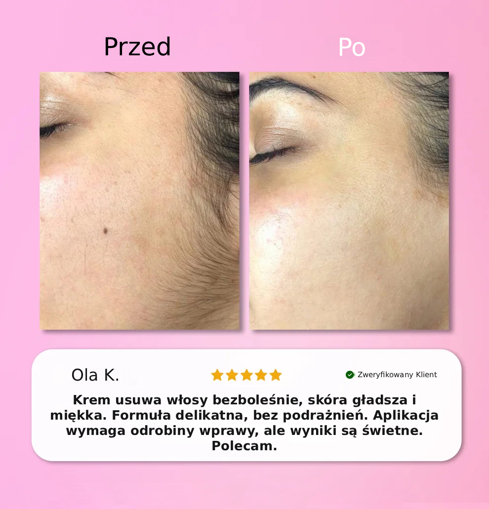 Ten krem jest specjalnie opracowany dla kobiet z problemem nadmiernego owłosienia twarzy związanego z PCOS, skutecznie radząc sobie z grubszymi i szorstszymi włosami, których tradycyjne kremy mogą nie usunąć. Dodatkowo jest stworzony z myślą o wrażliwej skórze, minimalizując podrażnienia i zaczerwienienia.