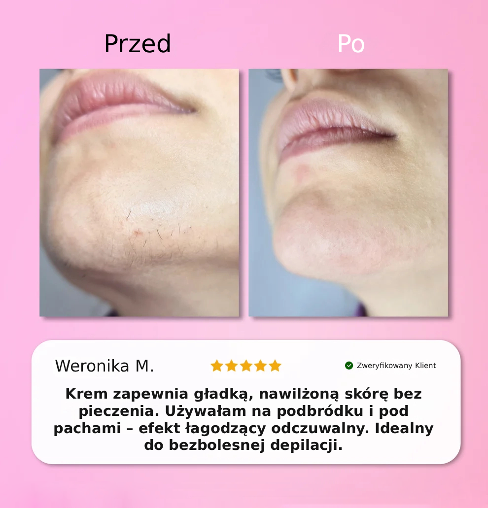 Ten krem jest specjalnie opracowany dla kobiet z problemem nadmiernego owłosienia twarzy związanego z PCOS, skutecznie radząc sobie z grubszymi i szorstszymi włosami, których tradycyjne kremy mogą nie usunąć. Dodatkowo jest stworzony z myślą o wrażliwej skórze, minimalizując podrażnienia i zaczerwienienia.